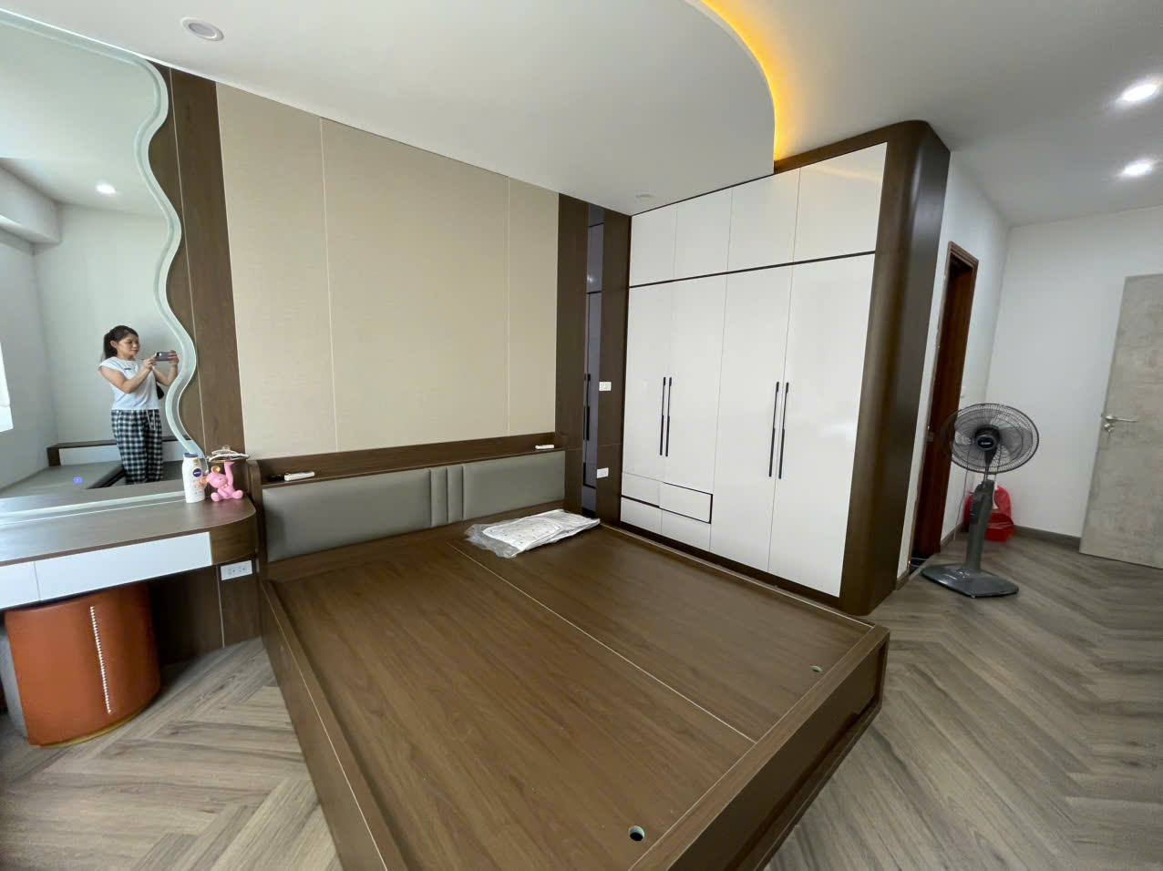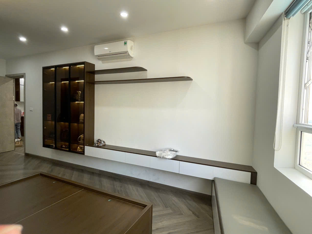 Căn hộ 80m2 được cải tạo và thiết kế lại với phong cách hiện đại, tối giản nhưng vẫn đảm bảo đầy đủ công năng cho gia đình. Tông màu nâu gỗ – trắng chủ đạo mang đến cảm giác ấm cúng và sang trọng.